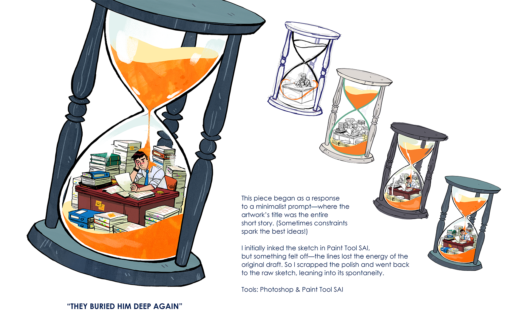 A selection of Illustrations showcasing a breadth of styles & subjects - a mix of personal & professional projects.FYI: I hoard WIP screenshots like a dragon with treasure—feel free to ask me for process on any of the following pieces!